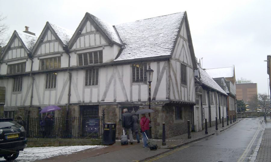Leicester's guildhall is a grade i listed timber framed building, with the earliest part dating from c1390.